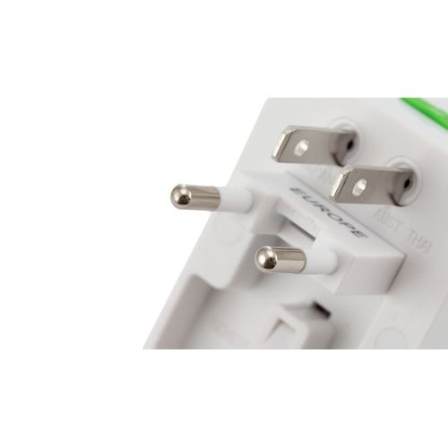 Adaptateur de prises rétractables, de conception ultra-compacte et portable. Idéal pour les voyageurs, il comprend des adaptateurs multi-région pour les USA, l´Europe, l´Asie et le Royaume-Uni. Présenté en boite individuelle.