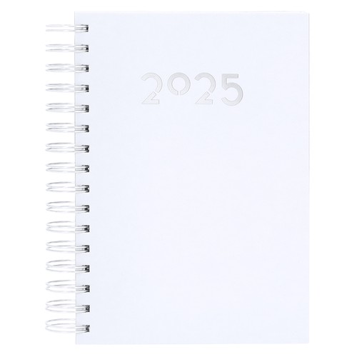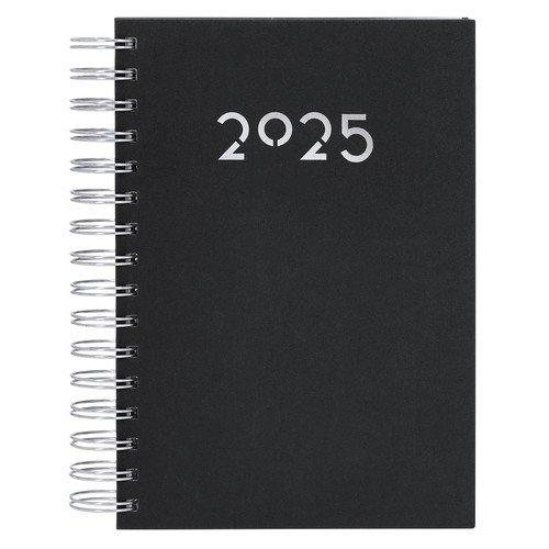 Agenda à anneaux format A5 en cuir PU doux et résistant, avec couvertures rigides. Inclus une boîte de présentation en kraft.Design page par jour et pages avec coin découpé. En 2 langues : espagnol et anglais.