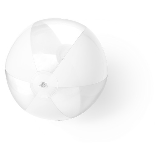 Ballon gonflable en PVC bicolore avec alternance de panneaux blancs et transparents. Couleurs vives.