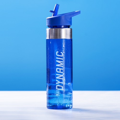 Bouteille de grande capacité de haute qualité -650 ml- en matériau tritan résistant à la chaleur et sans BPA. Avec anneau en acier inoxydable et bouchon distributeur vissé, avec poignée intégrée assortie. Disponible dans une large gamme de couleurs transparentes.