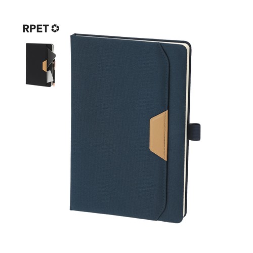 Bloc-notes en RPET, avec une poche extérieure avec un détail distinctif en PU marron. Inclut 80 feuilles de couleur crème à rayures et un support élastique pour stylo assorti. Inclut un symbole RPET.Le matériau RPET est fabriqué à partir de plastique recyclé, afin de promouvoir la réutilisation des déchets plastiques et d’aider à la durabilité de la planète.