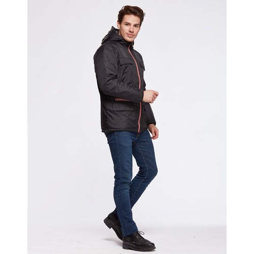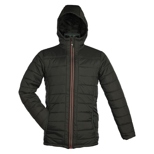 Face A : doudoune 100% nylon 40D, garnissage ouatine, 2 poches mains avec passepoil de finition, zip tricolore. Zip invisible sur le flanc gauche pour personnalisation.