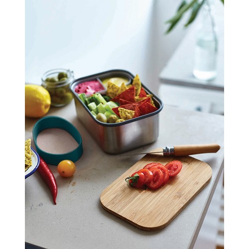 Suite au succès de notre première boîte à sandwich, nous avons introduit cette version plus grande pour vous permettre d’emporter des articles plus volumineux tels que des fruits et des yaourts. Il s’agit d’une solution robuste, 100% sans plastique, pour préparer et transporter vos sandwichs, votre charcuterie ou même votre sélection de fromages ! La boîte à sandwich en acier inoxydable fait partie de ces produits qui vous semblent familiers et fiables dès le premier jour, et qui sont conçus pour vieillir en beauté. Utilisez le couvercle en bambou naturellement antibactérien comme planche à découper pour créer vos sandwichs ou comme planche de service pour assembler les ingrédients d’un délicieux repas plus tard dans la journée. La boîte en acier inoxydable protège le contenu et la sangle en silicone offre une sécurité supplémentaire. Le compartiment intérieur permet de séparer les différents aliments et passe au four à micro-ondes. Lavage à la main uniquement.