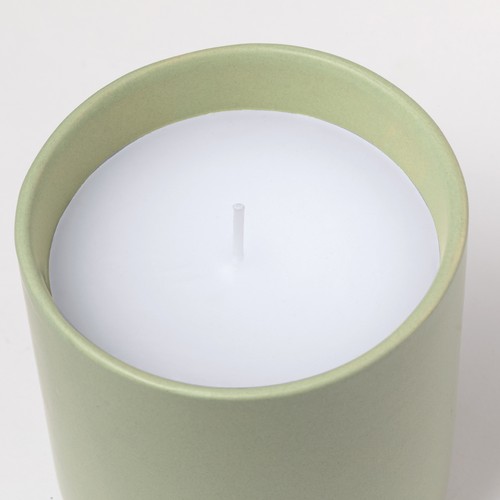 Bougie aromatique en pot en céramique au parfum vanille. Disponible en verre aux couleurs élégantes et aux tons naturels. Présenté en boîte individuelle design kraft.