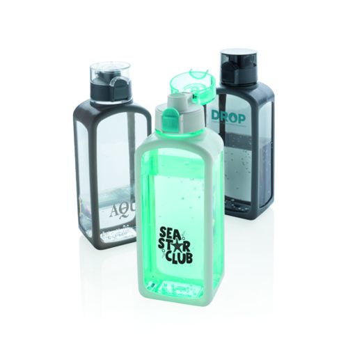 Bouteille 600ml en Tritan de forme unique avec manche en silicone. Bouchon avec verrouillage spécialement conçu pour éviter que la bouteille s’ouvre par accident. Modèle déposé®