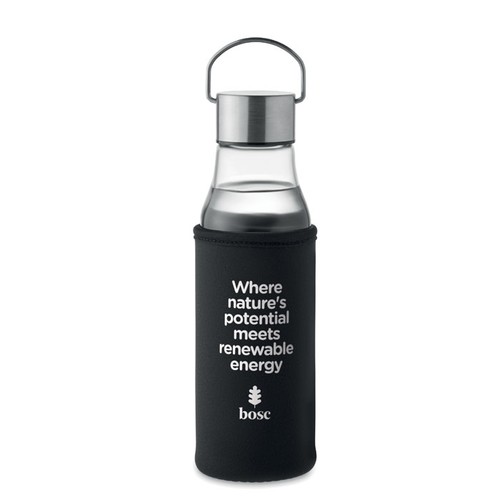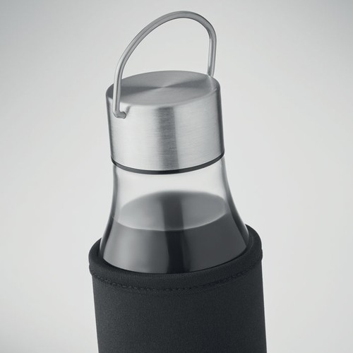 Bouteille en verre avec bouchon à poignée en acier inoxydable. Anti fuite. Capacité : 500 ml.