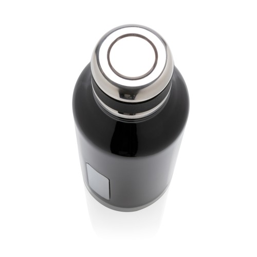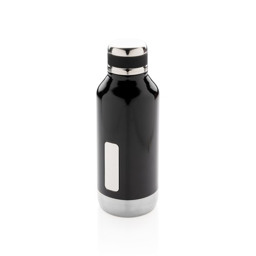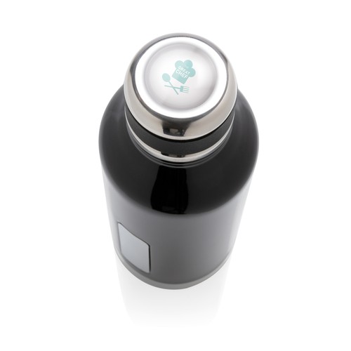 Bouteille étanche 500ml à double paroi en acier inoxydable, extérieur en 201 et intérieur en 304. Couvercle à visser. Plaque sur le devant de la bouteille pour y mettre le logo. Garde les boissons chaudes 5h et froides 15h.