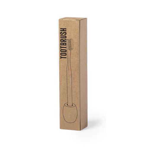 Brosse à dents, gamme éco-friendly, en bambou et avec support de la même matière. Présenté dans un coffret éco design individuel.