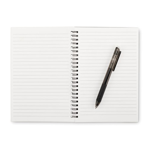 Carnet A5 réutilisable avec couverture en PP. 36 pages lignées en papier recyclé (18 feuilles). Compatible avec toute application de numérisation de documents. Comprend un stylo effaçable à l’eau et un chiffon de nettoyage.