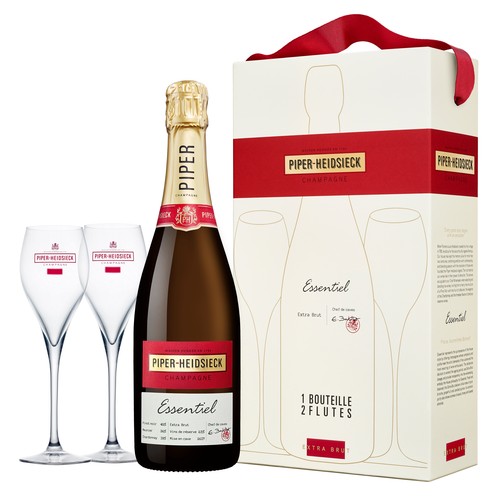 CHAMPAGNE PIPER-HEIDSIECK ESSENTIEL EXTRA BRUT - COFFRET 1 BOUTEILLE 75cl ET 2 FLÛTES