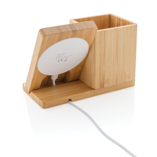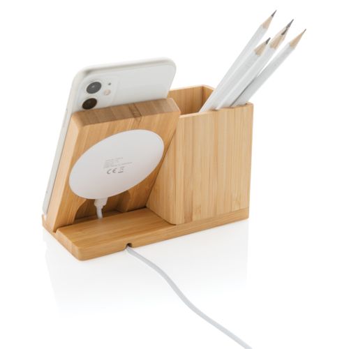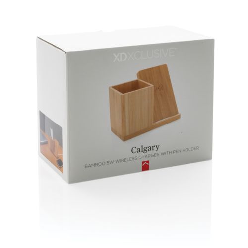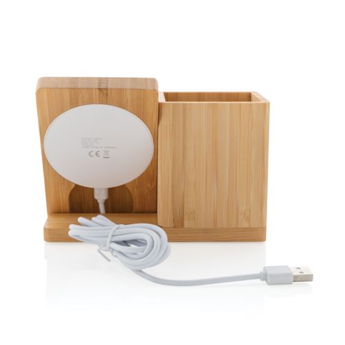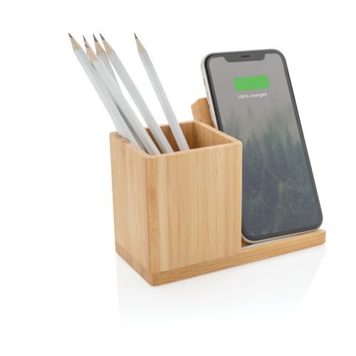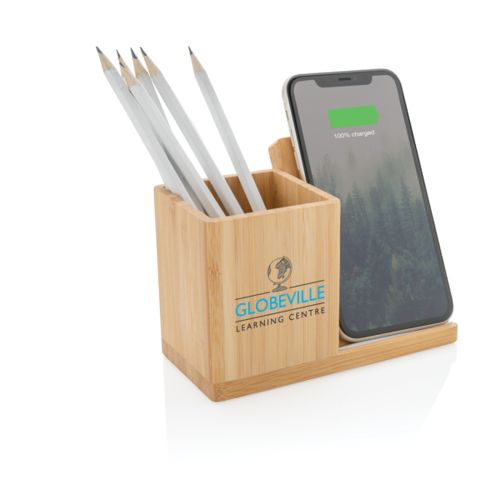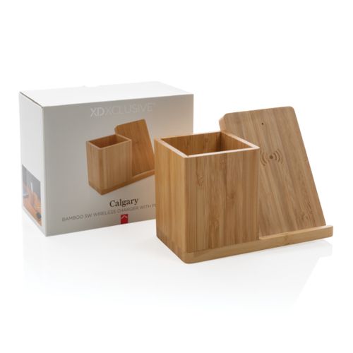 Chargeur sans fil en bambou 5W avec porte-stylo Calgary