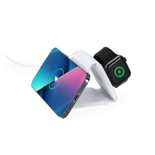Chargeur sans fil magnétique complet 15W, conçu pour la charge simultanée de smartphone, écouteurs et smartwatch. Un gadget tout-en-un: pliable, portable, compact, très polyvalent et fonctionnel dans son design. Connexion via USB Type C -câble inclus- et fabriqué en ABS résistant de couleur blanche.Fabriqué selon les normes RoHS et en conformité avec les exigences de sécurité suivantes :Système de protection contre la surchauffe.Système de protection contre la surcharge.Système de blocage pour éviter les courts-circuits.