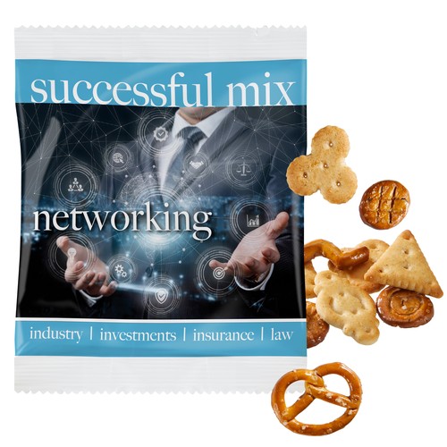 Assortiment de biscuits apéritifs salés et aux graines de pavot, en sachet blanc, compostable.