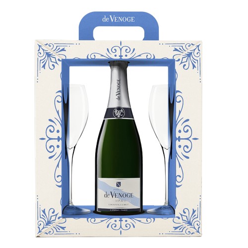 COFFRET DE VENOGE 1 BT CORDON BLEU BRUT + 2 FLÛTES
