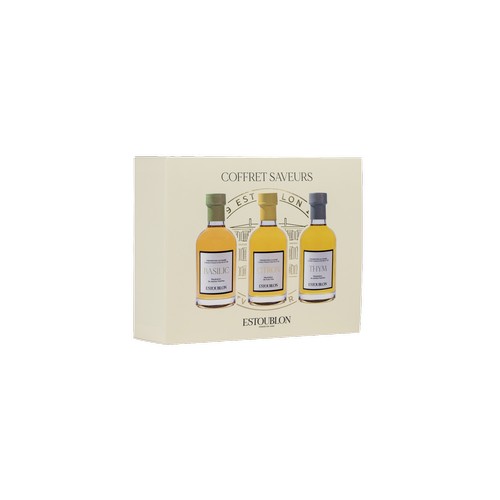 Coffret saveur – 3 huiles aromatisées 20 cl : Basilic, Citron, Thym