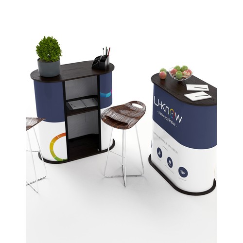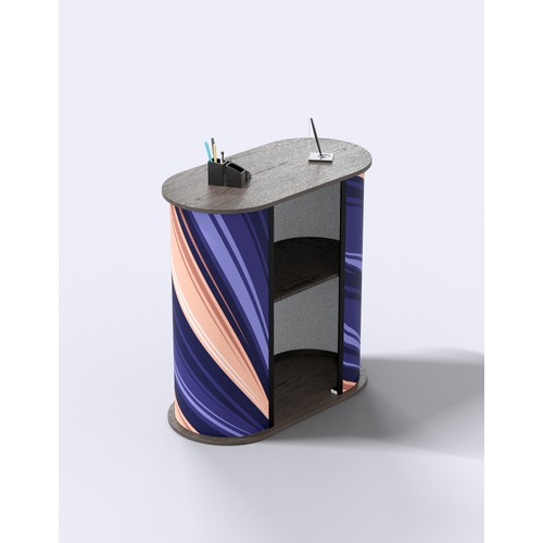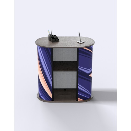 Le Bar Bacota est le comptoir d’accueil personnalisé et publicitaire le plus simple à installer. Composé de deux plateaux mélaminés en haut et en bas, la banque d’accueil est faite de cannelures en PVC sur laquelle l’affiche en PVC encapsulé vient se fixer par des bandes velcro. Le bar est livré semi-monté dans son sac de transport (inclus). L’étagère centrale à l’intérieur est en option..Structure disponible sur stock dans notre entrepôt parisien, impression réalisée après validation de la commande