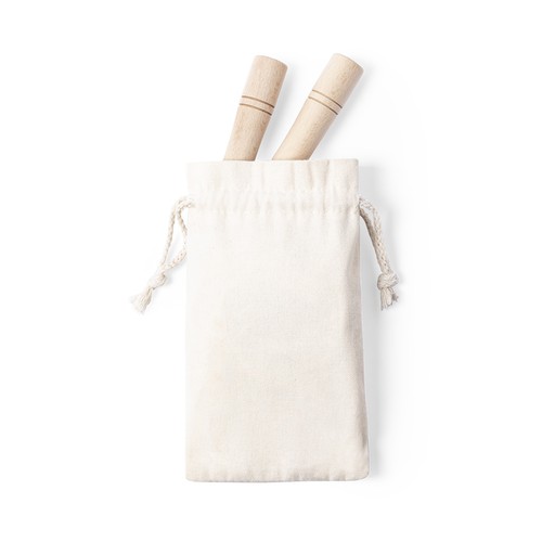 Corde de la ligne nature, avec une corde extra longue de 3 m en coton avec une finition naturelle. Poignées ergonomiques en bois de hêtre résistant et présentées dans une housse en coton naturel avec fermeture à cordon..