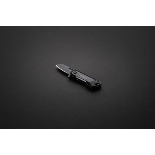 Couteau de poche et pliable noir, fabriqué en aluminium et en acier inoxydable 420 de qualité. Ce couteau allie un design minimal à de solides performances, facile à utiliser et à verrouiller. Sa conception robuste en fait le couteau idéal pour une utilisation en intérieur comme en extérieur. Emballé dans une boîte cadeau.