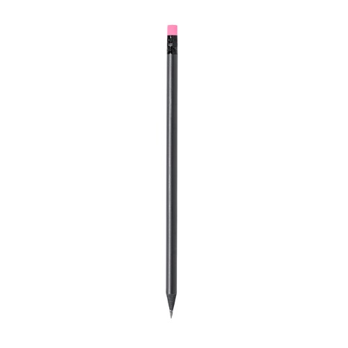 Élégant crayon noir en bois naturel, avec caoutchouc pratique et disponible en différentes couleurs. Avec mine noire et pointe pointue.