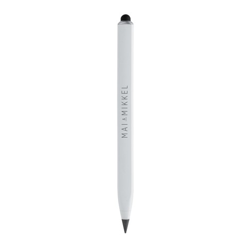 Stylo moderne en aluminium recyclé certifié RCS. Contenu recyclé total : 40% sur la base du poids total de l’article. La certification RCS garantit une chaîne d’approvisionnement entièrement certifiée pour les matériaux recyclés. Corps en forme de triangle avec un côté en cm et un côté en Inches. Les crayons de bois traditionnels n’écrivent que jusqu’à environ 200 mètres, mais ce crayon infini sans arbre a une longueur d’écriture allant jusqu’à environ 20000 mètres grâce à une pointe en graphite qui produit une ligne propre qui peut être effacé avec une gomme. Avec une pointe tactile pour utiliser son téléphone. Emballé dans un emballage FSC® mix.