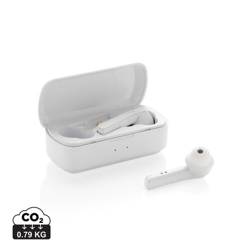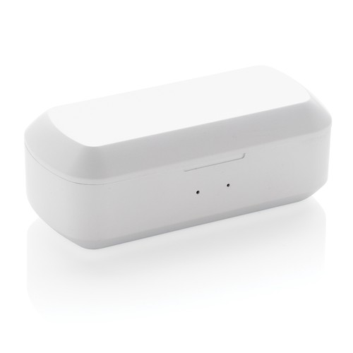 Ecouteurs en ABS avec technologie BT 5.0 pour connexion facile (jusqu’à 10m) et une qualité d’écoute parfaite. Batterie 35 mAh pour 3 heures d’écoute et peut être rechargé en 1 heure dans le boîtier de charge de 500 mAh. Livré avec des embouts de différentes tailles. Avec fonction micro et prise d’appel.