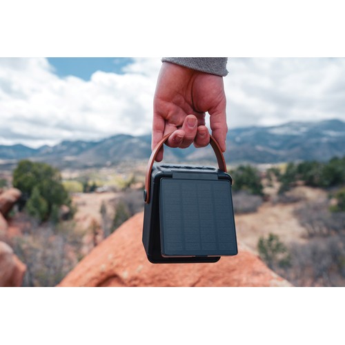 Haut-parleur sans fil de 12 W avec grand panneau solaire intégré en ABS recyclé certifié RCS. Contenu recyclé total : 16 % sur la base du poids total de l’article. La certification RCS garantit une chaîne d’approvisionnement entièrement certifiée pour les matériaux recyclés. Le haut-parleur utilise des panneaux solaires monocristallins avec un taux de conversion de 19 %. Le taux de charge dépend des conditions. Une lampe LED intégrée permet d’utiliser l’enceinte même lorsque le soleil s’est couché. Le haut-parleur est équipé d’une batterie de 1500 mAh pour assurer jusqu’à 8 heures d’autonomie et de la technologie BT5.3 pour une connexion fluide, un son clair et une portée de connexion jusqu’à 10 mètres. Fonction micro et prise d’appel. Vitesse de charge solaire : 5V/300mA. Emballé dans une boîte FSC® mix. Câble de chargement en TPE recyclé certifié RCS inclus. Article et accessoires 100% sans PVC.