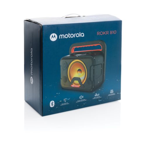 Enceinte sans fil Motorola Sound ROKR 810 de 40 W avec caisson de basse intégré pour un son et des basses de qualité, autonomie jusqu’à 20 heures et avec connexion Bluetooth 5.0. Vous pouvez également connecter des appareils via l’entrée AUX. Le haut-parleur Motorola Sound ROKR 810 est doté de LED intégrées de 6 couleurs différentes, lorsque vous diffusez de la musique, les voyants lumineux dansent joyeusement au rythme de la musique. Le Motorola Sound ROKR 810 est livré avec un véritable microphone karaoké que vous pouvez connecter via l’entrée AUX. Poignée intégrée de transport. Emballé dans une boîte cadeau Motorola.