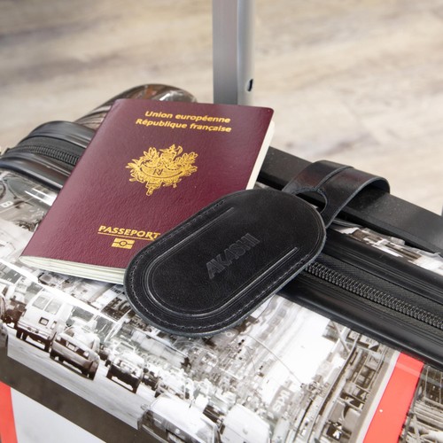 ETIQUETTE BAGAGE EN CUIR VERITABLE NOIR - MADE IN EUROPE