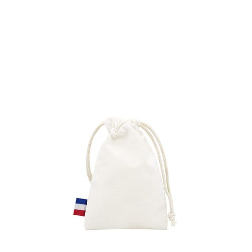 Pochon Franck S naturel certifié(e) GRS, dimensions 10x15cm, Confection France, en 100% matières recyclées – 150gr – tissées France, avec 2 cordons de 3,5mm d’épaisseur. Étiquette intérieure de composition avec logo Bonjour François, galon BBR sur le coté du pochon.
