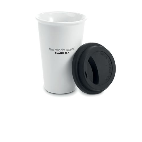 Gobelet de voyage à double paroi en céramique avec couvercle en silicone. Contenance 275 ml.