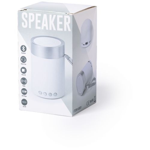 Haut-Parleur Bluetooth, bicolore, avec poignet de transport. Grâce à sa connexion Bluetooth 4.2, il offre 3W de puissance, dispose d´une fonction mains libres (portée de 10 mètres), d´un lecteur USB, d´un emplacement pour carte micro SD et d´une fonction radio FM. Entrée de ligne auxiliaire via connexion micro USB à une prise jack de 3.5 mm. Base antidérapante. Compatible avec iOS et Android. Comprend un câble de chargement micro USB. Présentation sous boîte cadeau.