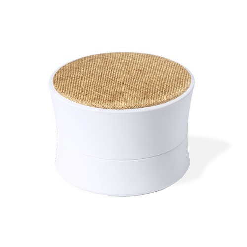 Haut-parleur Bluetooth® de taille compacte et d’une puissance de 3W. Combinaison d’un corps en ABS blanc avec une grille en polyester disponible dans une large gamme de couleurs. Batterie au lithium 300mAh, avec câble de chargement Type C inclus. Présenté dans une boîte individuelle kraft design, avec un manuel d’instructions en espagnol et en anglais.