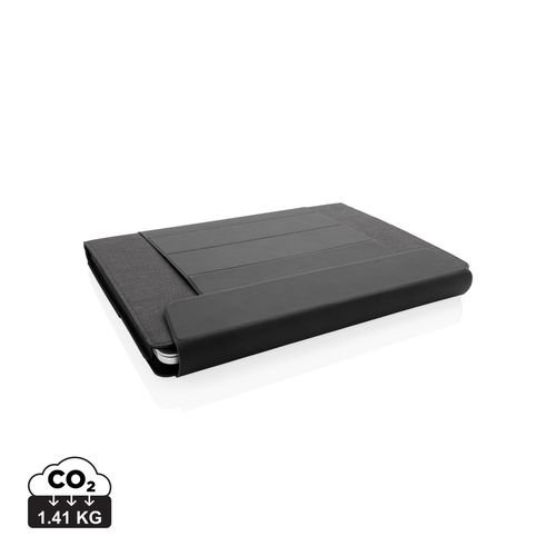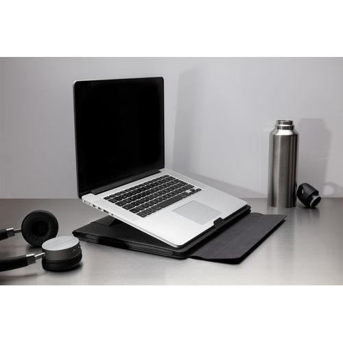 Housse pour ordinateur 15,4 pouces en plyester et PU qui se transforme facilement en poste de travail pour que vous puissiez travailler partout confortablement. Restez organisé grâce aux poches supplémentaires de la housse et aux passants pour stylos qui vous permettent d’emporter avec vous vos autres essentiels de bureau.
