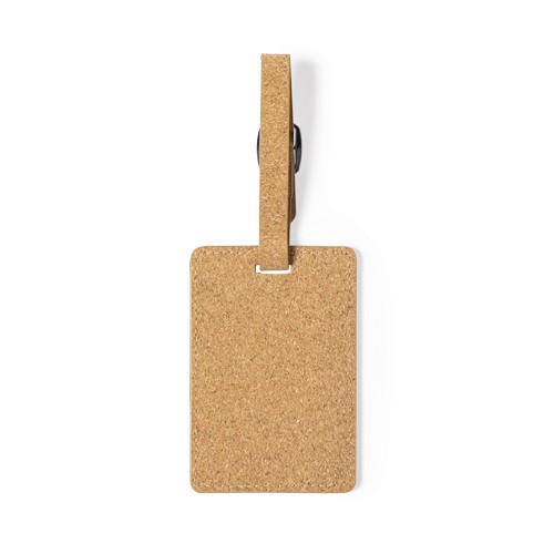 Identifiant pour les valises de la ligne nature en liège naturel. Sangle de fixation avec fermeture à boucle métallique et carte d’identité en anglais.