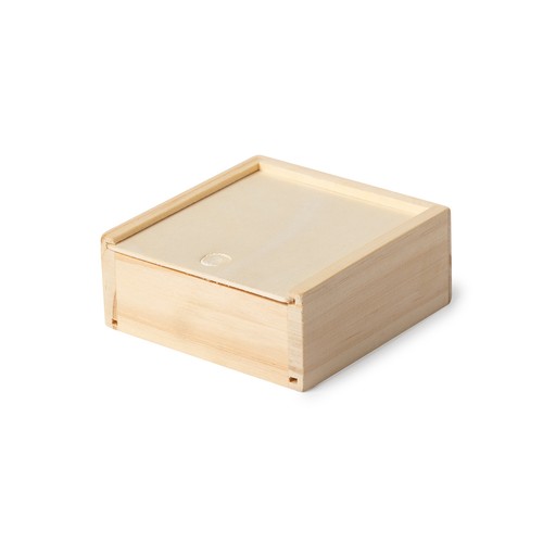 Jeu de société en bois, présenté dans un coffret individuel en bois avec couvercle coulissant.