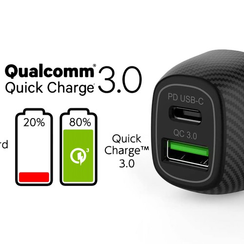 Optimisez la charge de vos appareils durant vos voyages en voiture avec ce chargeur allume-cigare. Il intègre les meilleures technologies de charge pour booster la batterie de vos appareils avec une vitesse exceptionnelle. En effet, la sortie USB-C Power Delivery 20W peut recharger vos appareils compatibles de 0 à 50% en 30 minutes, tandis que le port USB-A Quick Charge 3.0 18W permet de recharger un appareil compatible, 4 fois plus rapidement qu’un chargeur USB conventionnel.