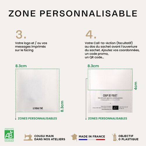 Vous avez un message à faire passer à vos clients, vos partenaires, vos collaborateurs ? Quoi de plus élégant qu’un sachet de thé portant un message ?