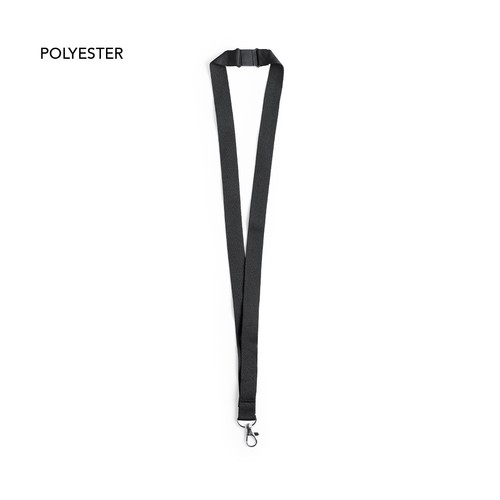 Tour de cou en polyester avec clip de sécurité. Mousqueton en métal. Large choix de couleurs disponible.