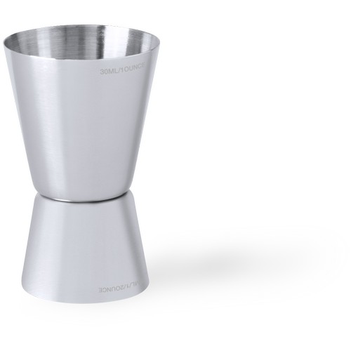 Mesure à boissons en acier inoxydable finition mate. Spécialement conçue pour le marquage laser et présenté dans une boîte en PVC.