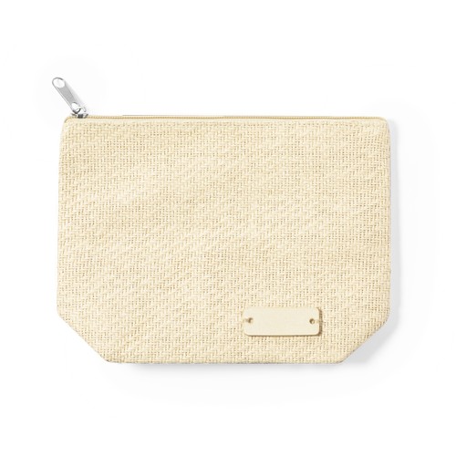 Neceser en matériau synthétique, avec fermeture à glissière et poignée en métal. Avec surface pour la personnalisation en bois, spécialement conçu pour le marquage laser.