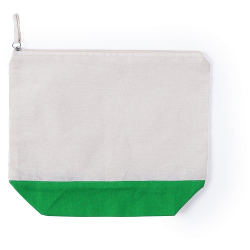 Trousse de beauté polyvalente en. Matière coton de 140g/m2. Design bicolore, avec corps en coton de couleur naturelle et base dans une large gamme de couleurs vives. Fermeture éclair de couleur assortie, avec tirette chromée.