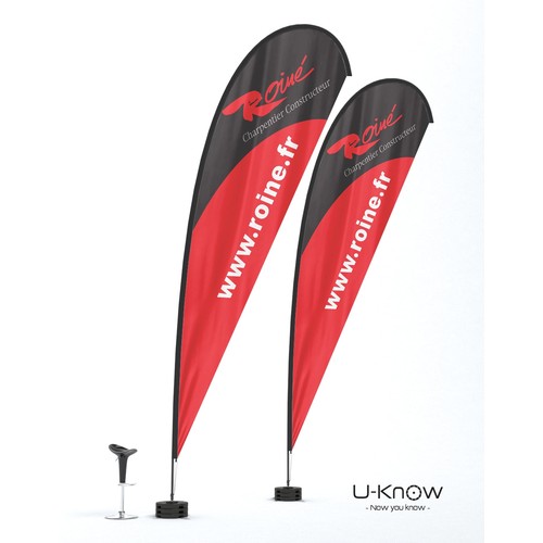 Beach flag goutte d’eau de 7m de hauteur. Voile oriflamme en matière 100% polyester 115g/m². Seule une impression recto seule est possible. L’impression est réalisée en quadri numérique et visible au verso par transparence. Le fourreau noir de la voile est renforcé et fabriqué dans un polyester Oxford 300 D. Le mât est en fibre de carbone (très résistant). Le mât se fixe sur le croisillon acier monté sur un axe de rotation spécial à roulement à billes MATP90. Il convient de lester avec au moins 3 socles PVC Béton sans axe de rotation (réf:MATP31) pour obtenir une bonne résistance aux vents pour ces oriflammes géantes. Utilisation extérieure exclusivement. Garanti pour un vent inférieur à 70 km/h..Structure disponible sur stock dans notre entrepôt parisien, impression réalisée après validation de la commande