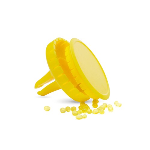 Parfum d´ambiance senteur citron pour grille d´aération de voiture. Avec emplacement sur le corps pour marquage en Doming. Coloris gais.