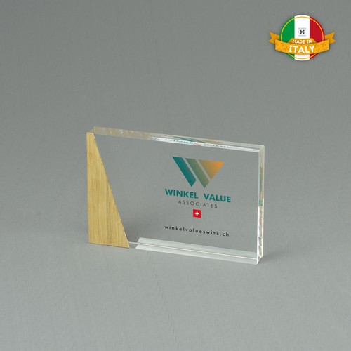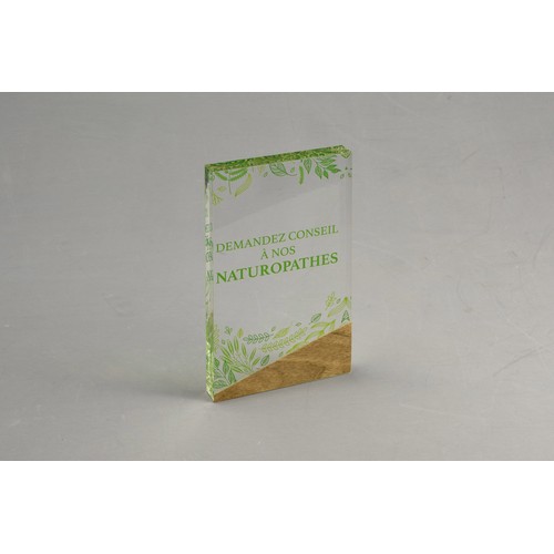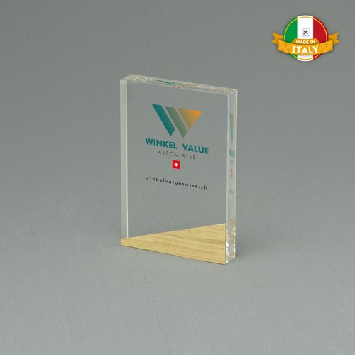 Plaque ronde en cristal personnalisable avec gravure 2D – 3D et impression. Dimensions: 125x120x25 mm