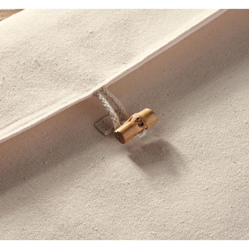 Pochette matelassée pour ordinateur portable 15 pouces en coton 220 gr/m². Doublure intérieure 120 gr/m². Fermeture par bouton en bambou.