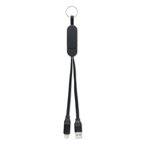 Porte-clés en ABS et fonctionnalité de support de téléphone avec câble de chargement. Entrée : 2-en-1 Type-C & Type-A. Sortie : Type-C et micro-B (2 en 1 broche).