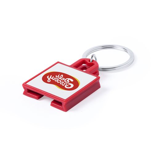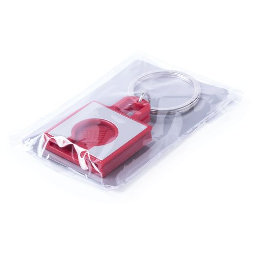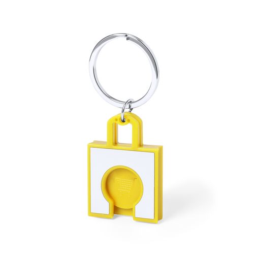 Porte-clés original en forme de sac shopping avec pièce de monnaie. Coloris Bicolore avec mélange de blanc et couleurs vives . Grande surface de marquage.
