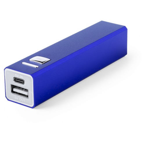 Batterie auxiliaire externe en aluminium de 2200 mAh de capacité de charge. Bouton pratique sur le côté avec indicateur de charge LED, facile à transporter en raison de sa petite taille et disponible dans une gamme de couleurs, spécialement conçu pour le marquage laser. Contient un câble micro USB. Présenté dans une boîte de conception attrayante.