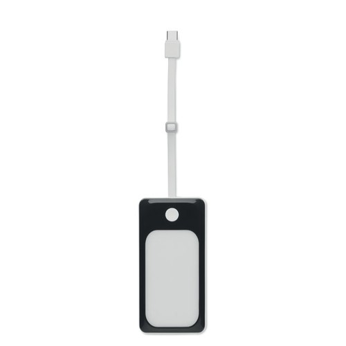 Powerbank de 10000 mAh dans un boîtier en ABS. Courant de sortie DC5V/2A. Comprend 4 voyants lumineux (9 leads COB) et un câble USB intégré avec prise de type C. Support PD 22,5W avec affichage de la batterie.