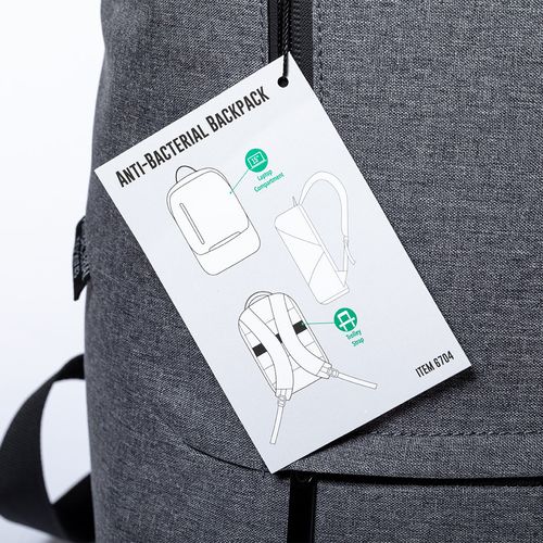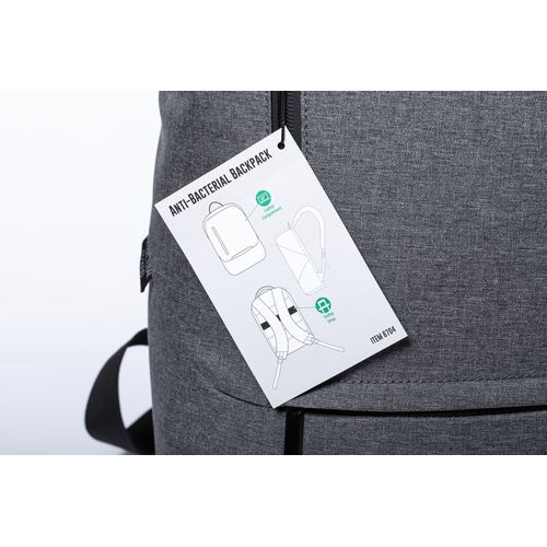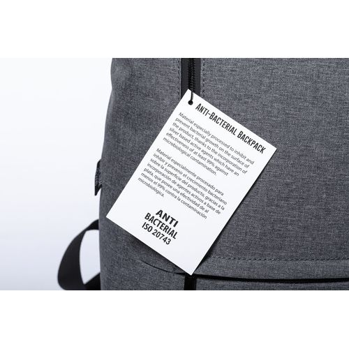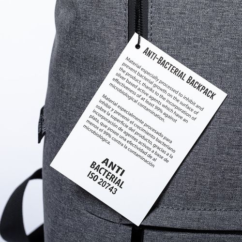 Sac à dos antibactérien en polyester 600D résistant. Avec fermeture à glissière double tirette et poches avant, y compris accessoire pour le poser sur valise. Poche intérieure rembourrée pour ordinateur portable jusqu´à 15 pouces. Coins renforcés, avec poignée de transport et accessoires de couleur noire. Dos et bretelles rembourrés et réglables, avec logo antibactérien sur l´étiquette apparente. Les produits avec des traitements antibactériens sont capables de réduire considérablement les niveaux bactériens présents sur les surfaces des matériaux, grâce à l´ajout d´agents microbiens statiques permanents, avec une grande efficacité pour inhiber et prévenir la contamination bactérienne. Article conforme à la norme ISO 20743, qui détermine l´activité antibactérienne des produits textiles.
